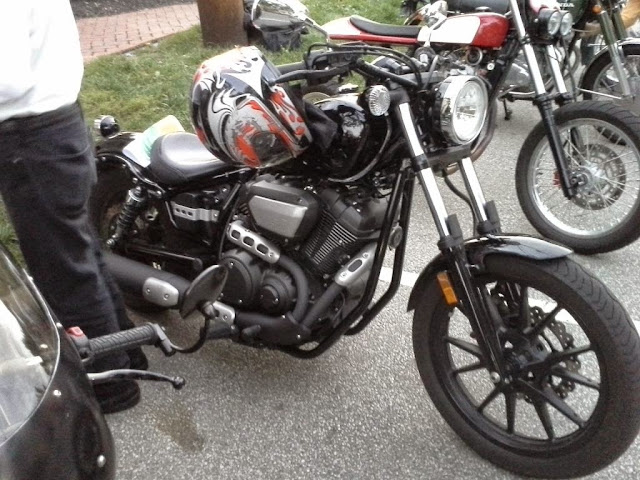 I recently heard about Ton Up Columbus from a friend of mine. He said they host a monthly bike night aimed at vintage cafes, brats and bobbers. So I headed to Dublin to check it out. It's always great encounter old bikes and new faces. It's also nice to find bike nights that aren't just a bunch of leathered up do rags pretending to be one percenters (no offense to any leathered up do raggers. . . or real one percenters). When I pulled in and found the only remaining parking space, I was approached by a 6'9" gentleman with very nice shoes. He turned out to be David Call, the event organizer. How many bike nights have you been to that the event organizer comes out personally to welcome you? I thought it was pretty nice.